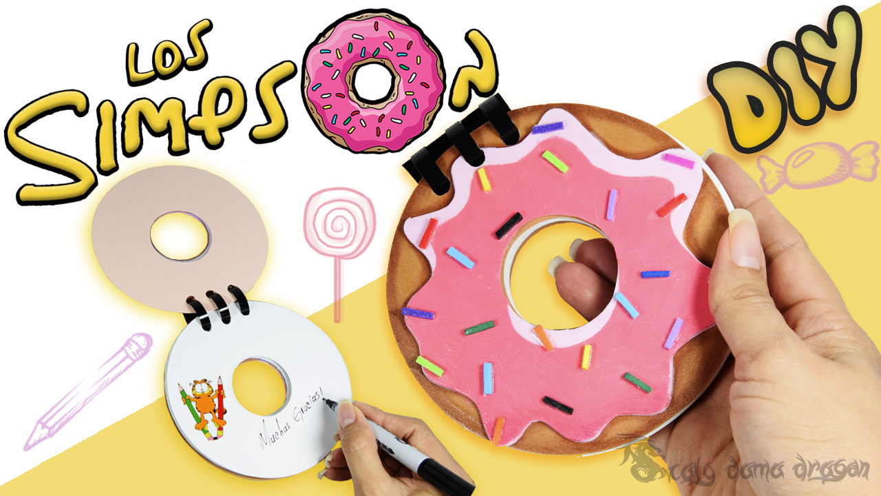Hoy les comparto esta divertida idea para todos los que les encante ponerle un toque peculiar y divertido a sus libretas de notas, a mi en lo personal me encanta y hasta me gusta coleccionarlas ya que hay una gran variedad pero lo mas divertido es hacerlas y para ello me inspire en los simpson, esa dona deliciosa que le le gusta comer a homero es lo mejor se ve tan apetitosa, pero es algo tan contradictorio en mi caso ya que comérmelas no me gustan y las que paso un poco son las de chocolate, si te gusta andar libretas de notas esta es una idea super genial que puedes poner en practica.